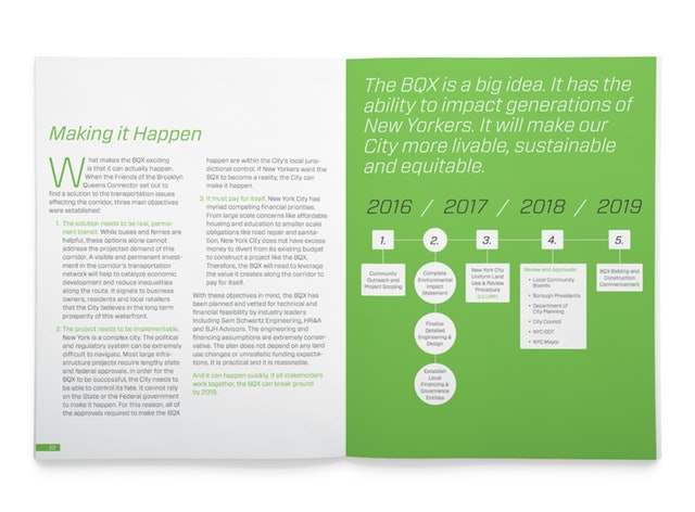 BQX有轨电车是纽约的标志性举措。该线路代表了自一个多世纪以前地铁开始服务以来的第一个新铁路系统,将有助于缓解沿途的地铁线路和拥挤的街道,并预计到2035年将为超过1500万的年度车手提供服务。对于设计师来说,挑战在于创造一种前瞻性的身份,有助于将BQX定位为一个重要且可行的交通系统。该计划还需要提供图形元素 - 地图,自定义图标和视觉指南 - 这些将在未来几年内用于制定支持。